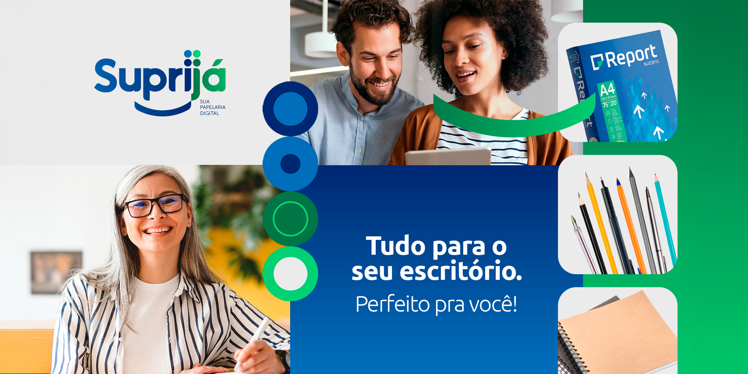 A Suzano, a líder global em produtos de papel e celulose, tem mais de 90 anos de história e inovação. Com o objetivo de oferecer soluções mais acessíveis e práticas, criou o Suprijá, seu marketplace de papelarias, garantindo os melhores preços e facilitando a compra diretamente pela plataforma.